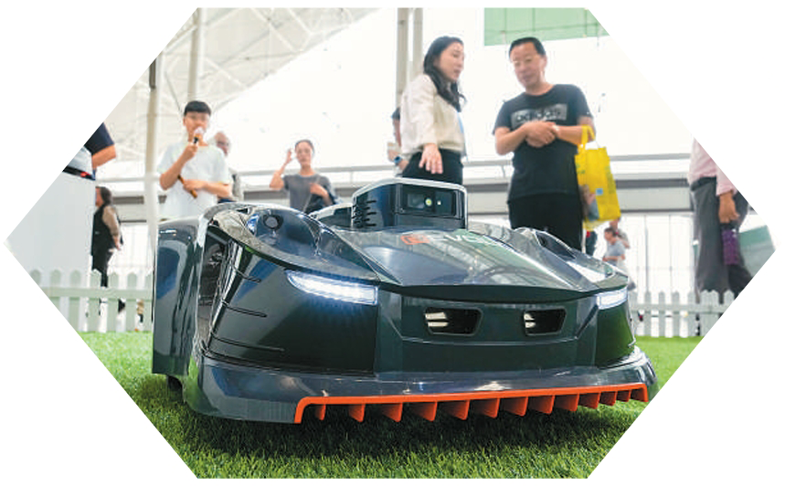 在不久前举办的2025年“外贸优品中华行江苏站”活动上,南京市民正在现场参观智能割草机器人。