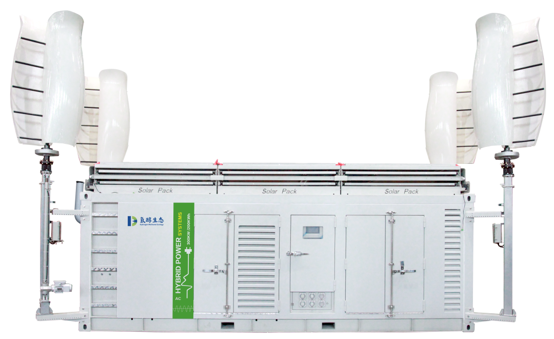 结合风力发电、光伏发电、甲醇发电、储能和充电功能的综合能源系统。产品功率范围50-500kW,电池容量80-689kWh,具有固定式、移动式、车载式等多种类型,可以为用户提供静音、便捷、连续和零排放的电源,广泛应用于建筑、施工、采矿、油田、电信、租赁和移动充电等领域。