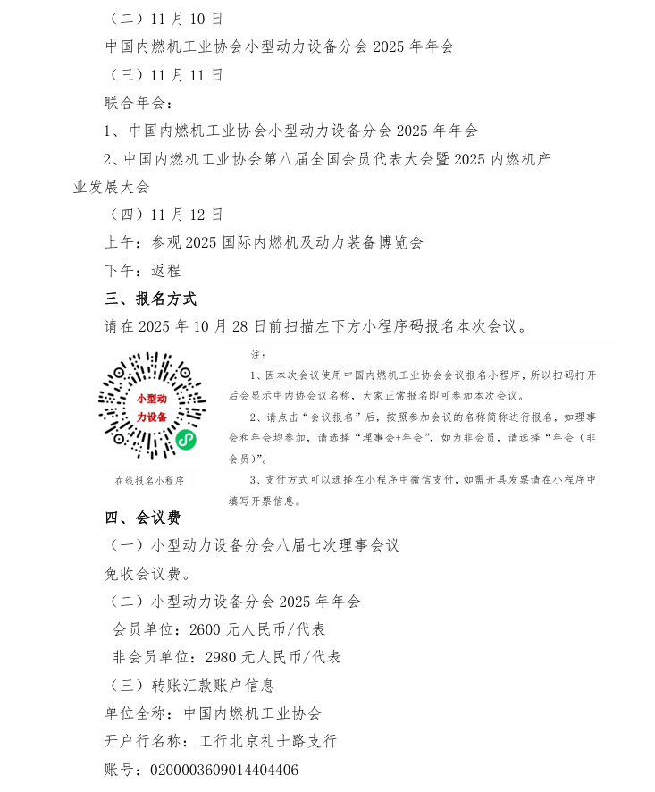 小型动力设备分会2025年年会:会员单位 2600元/代表 | 非会员单位 2980元/代表