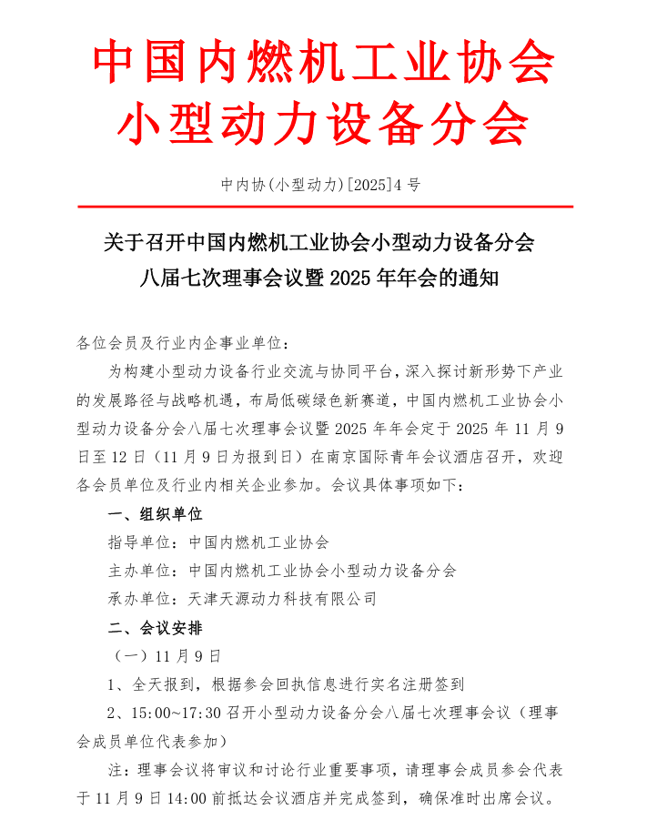 小动力·大未来丨【中国内燃机工业协会小型动力设备分会八届七次理事会议暨2025年年会】邀约!