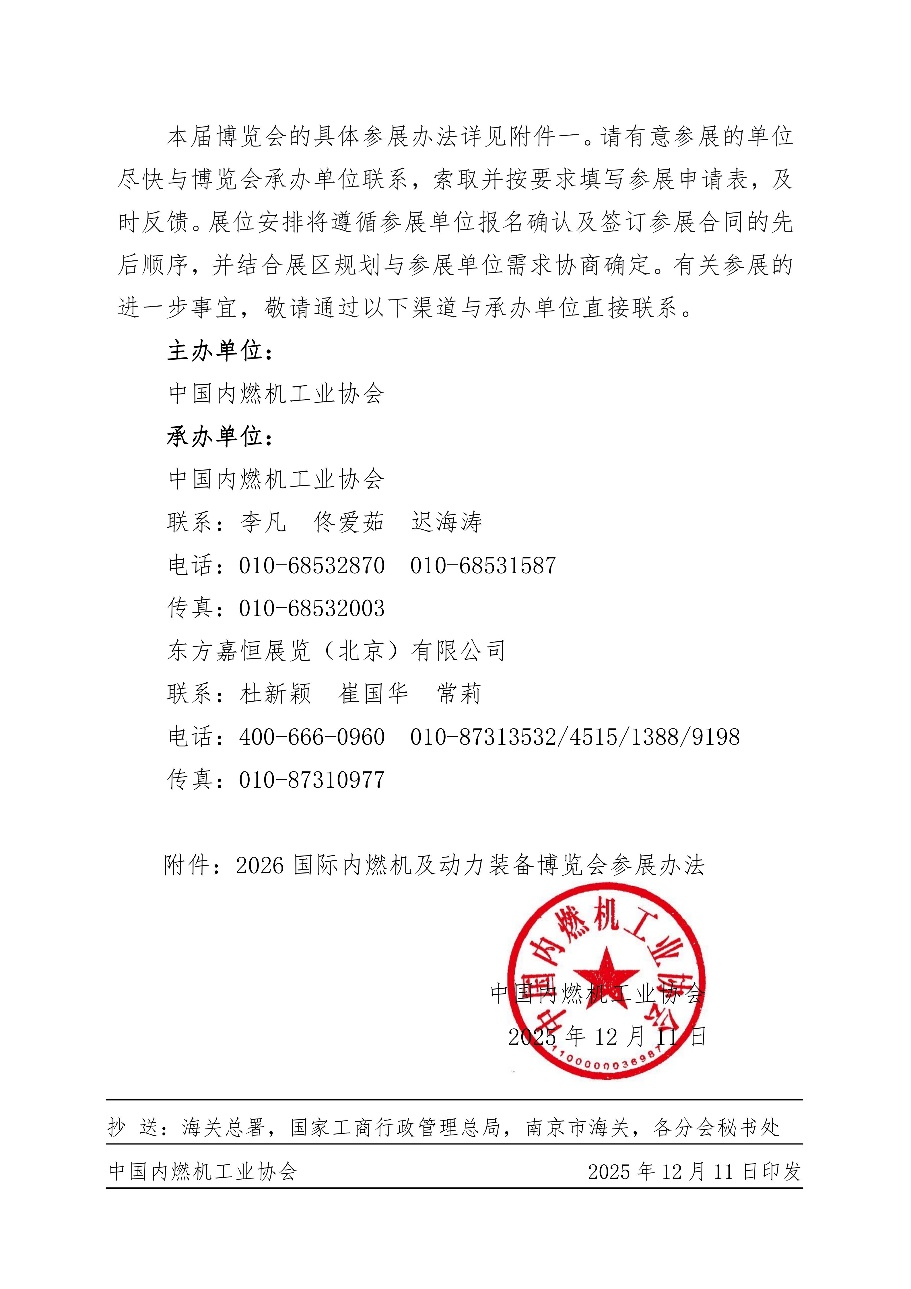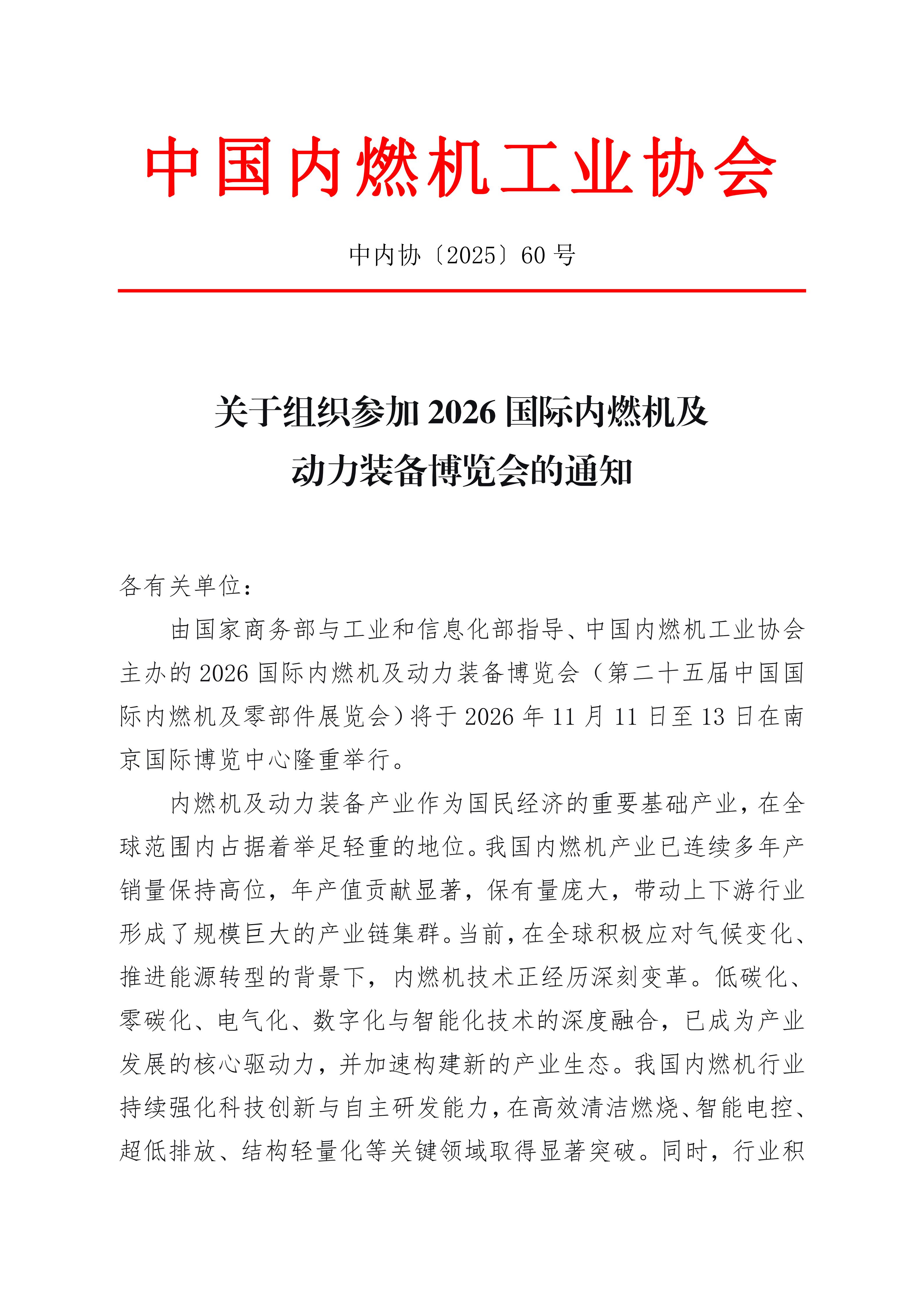 关于组织参加2026国际内燃机及动力装备博览会的通知