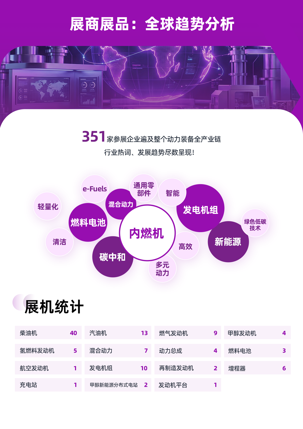 展商展品集中体现了产业的技术动向。本届展会汇聚众多领军企业,展品涵盖从传统内燃机到多元清洁动力的全谱系技术,透过展商结构与展品布局,清晰捕捉动力产业正在发生的系统性变革与未来演进路径。