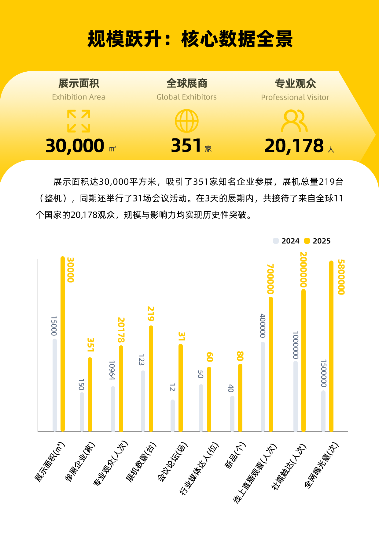 数字是产业发展的刻度,也是展会影响力的直接印证。本届展会以量级突破书写了新的纪录——从展示面积、参展企业到专业观众,多项核心指标均实现跨越式增长。
