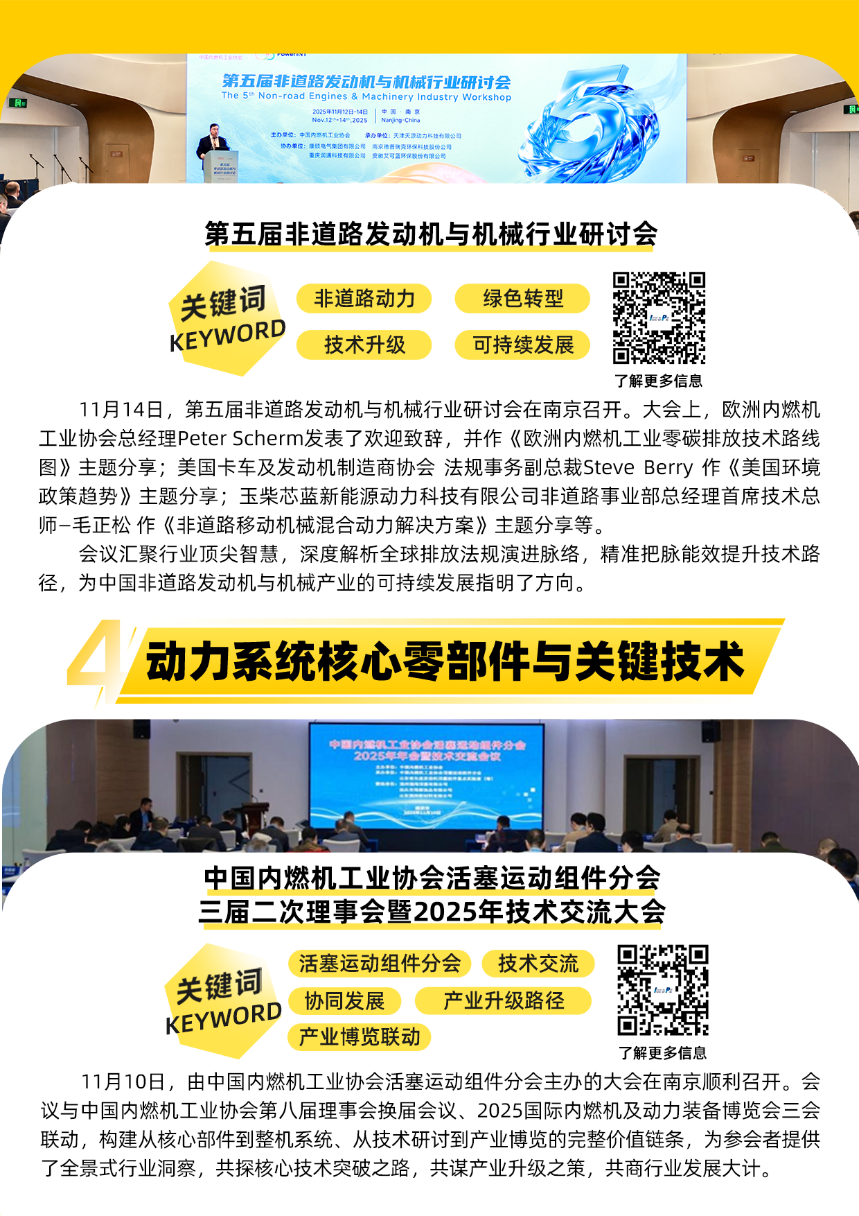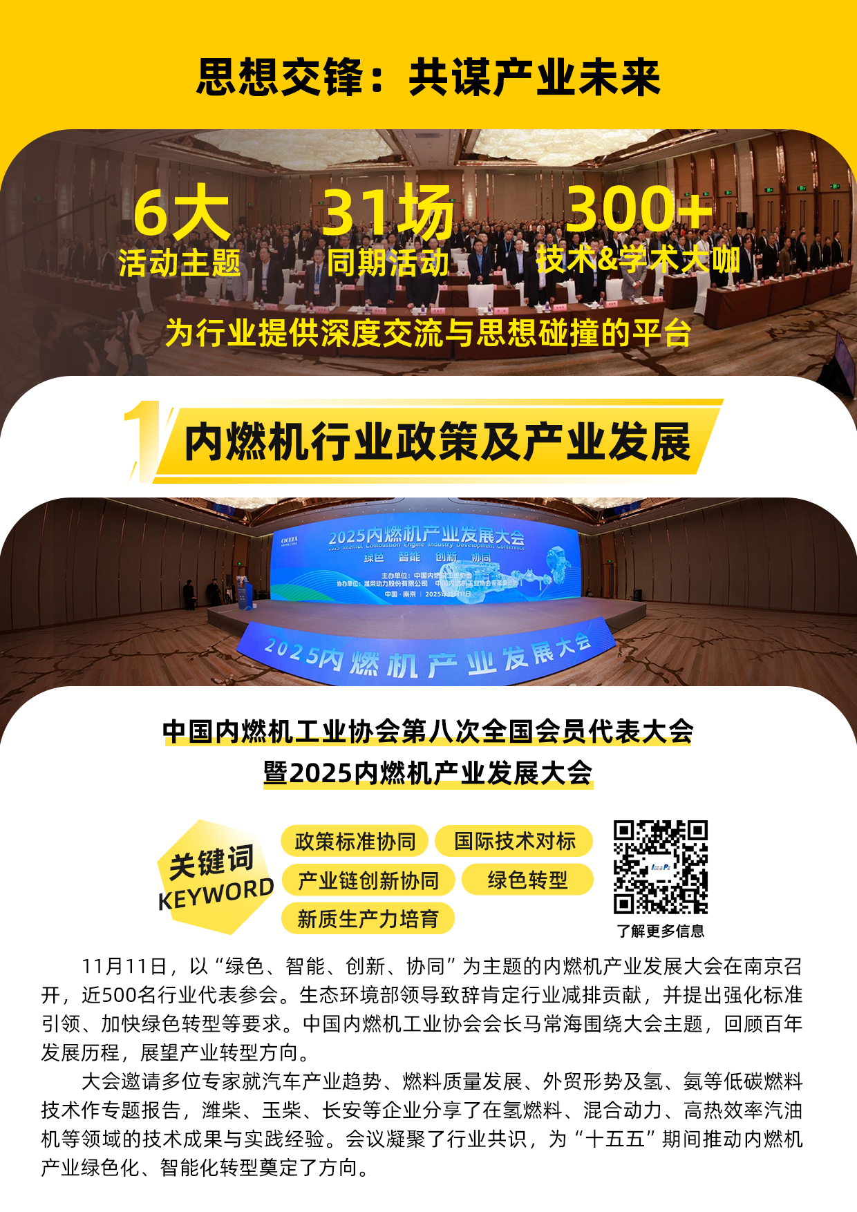 当思想交锋已落下帷幕,但其激荡的行业回响仍在持续。本届展会成功举办31场同期活动,围绕六大活动主题:1.内燃机行业政策及产业发展、2.多元动力前沿技术、3.特定应用领域动力系统、4.动力系统核心零部件与关键技术、5.行业生态与产业交流、6.户外动力产业未来趋势展开了深度探讨,形成了一系列具有前瞻性与实践价值的行业共识。这些对话不仅是观点的碰撞,更是对产业转型关键命题的集体回应。
