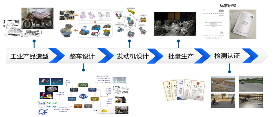 Для отрасли было разработано более 180 новых продуктов с легким двигателем, обладающих основными компетенциями по разработке новых продуктов: способность к моделированию всего автомобиля, способность к инновационному проектированию электрических мотоциклов, способность к разработке интеллектуальных технологий для мотоциклов, способность к разработке комплексных характеристик мотоциклов, способность к испытанию и проверке образцов автомобилей, способность развивать интеграцию ресурсов.